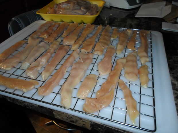 Tardó sólo 3 1/2 de mis estantes para este lote... Podría haber equipado les un poco más juntos, pero no necesario. Mi deshidratador contiene 10 estantes, por lo que no era necesario tomar el tiempo para organizar más cerca sin tocar.