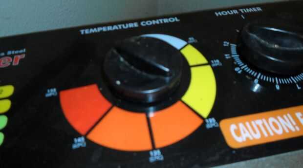 Siempre empiezo pollo desigual en 155F, durante unos 90 minutos... y puse el temporizador (para un lote de 10 libras) por 8 horas (tiempo de secado total).