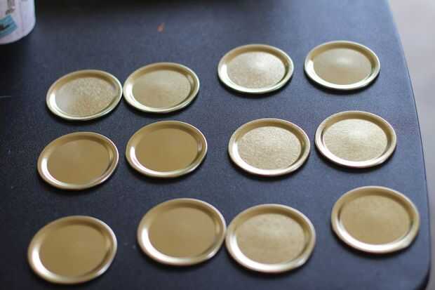 Opté por usar nuevo puede tapa pisos. Puede usar algunos que se han utilizado antes si han sido removidos suavemente, pero para asegurarse de que no estaban doblados, opté por usar los nuevos. Ahora es el momento para tomar estos inocentes poco pueden las tapas y em áspero para arriba. Utilicé papel de lija de grano medio y corrió por toda la superficie de la tapa para dar la pintura cierta textura a la que adherirse.