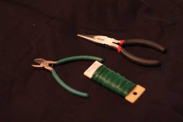 A continuación tomó cortadores de alambre y cortar un pequeño trozo de alambre floral y funcionó a través de los orificios en la lata tapa y envuelto alrededor de las rejillas en la parrilla cubierta y trenzado con alicates de nariz hasta que se fue asegurado firmemente.