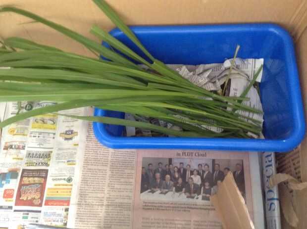 Acaba de poner sus hojas, heno y algunas tiras de papel de noticias. No hay poo en la caja de arena en el momento ya que solo limpió.