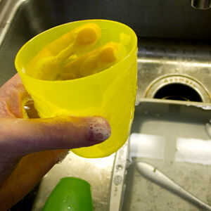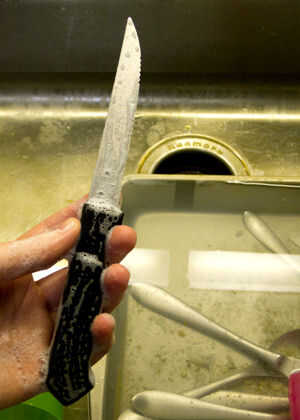 Al lavar cubiertos, no sólo lavar el extremo - lavar toda la longitud de la misma. Esta manera, no importa cómo dejas que se sequen, la cosa entera permanecerá limpio y germen-libre-ish.