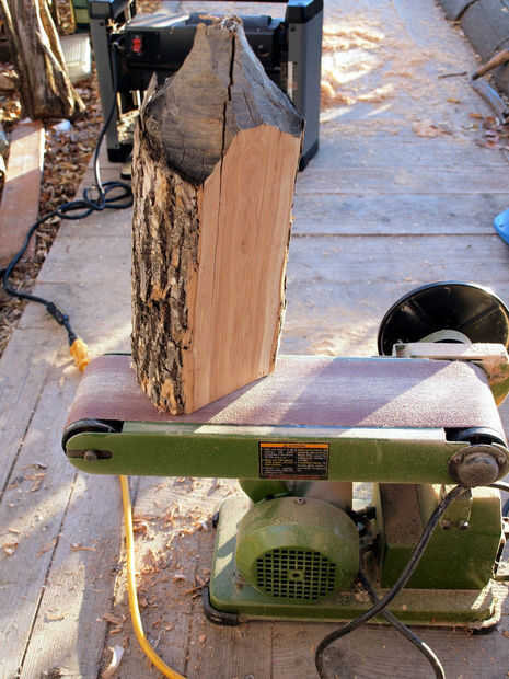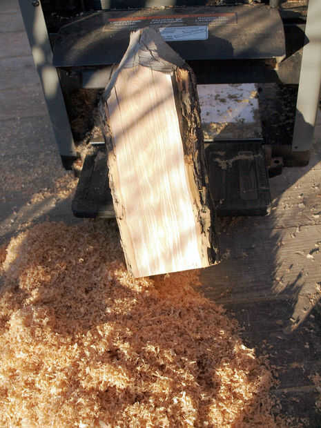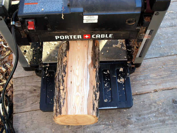 Puso en marcha el cepillo y me afeitó apagado un poco hasta que conseguí una bonita zona plana para trabajar en. Es posible utilizar una herramienta como una sierra de banda para esto pero he tenido muy buen éxito en usar sólo el cepillo.