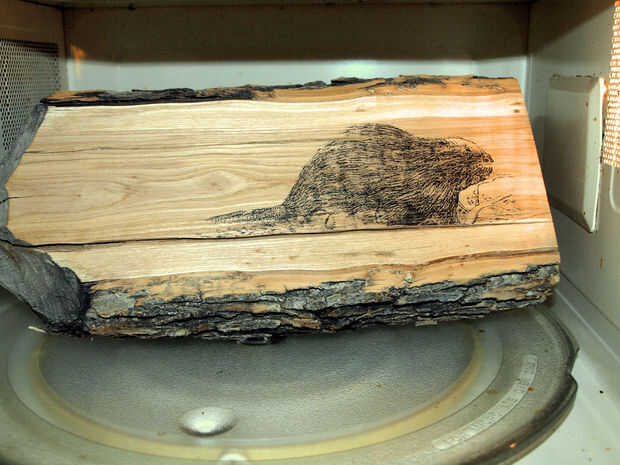 Hablando de errores, existe una remota posibilidad que podría haber algunas larvas o huevos en la madera, sobre todo porque estoy dejando la mayor parte de la corteza en. Para asegurarse de que no hay nada izquierda vida dentro I pone la ceniza en el microondas y cocido durante 5 minutos. Esto no calor el registro hasta tanto porque su madera muy seca. Realmente pensé que sería más caliente. Pero debe haber cocinado cualquier bugs que quedan dentro por lo que debe ser estéril.
