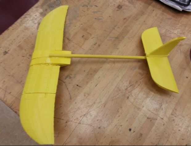 Utiliza el mismo proceso de pasador de metal y pegamento caliente para hacer la cola de otras partes de sobra y luego los pegan en la muesca. Finalmente aerosol pintado amarillo para ocultar lo feo, lo que podría decirse que hizo. Creo que fue un éxito puesto que mucha gente parecía como el avión y quería tirarla para ver si voló. (No) Ahora está colgada en mi habitación con ganchos de ojo y línea de pesca.