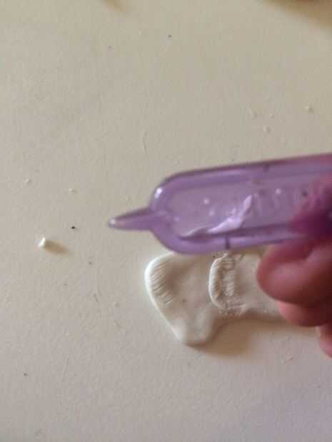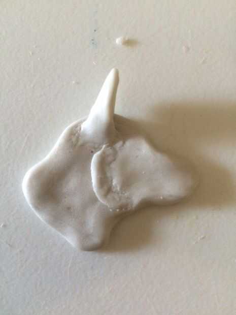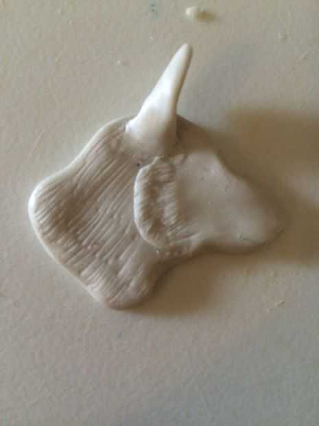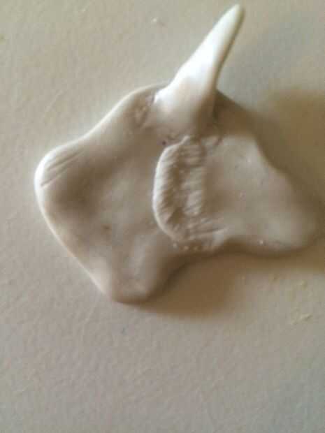 Tomar una pequeña bola de arcilla, del tamaño de una goma de borrar pero ligeramente más pequeño y rodar en una bola. Aplanar en forma de óvalo largo y curva ligeramente. Colóquelo debajo de la oreja y al final de la 'quijada'. En borrón de transferencia en un lado - deja a un lado sin aplastado para dar la apariencia de la piel de la mejilla!
