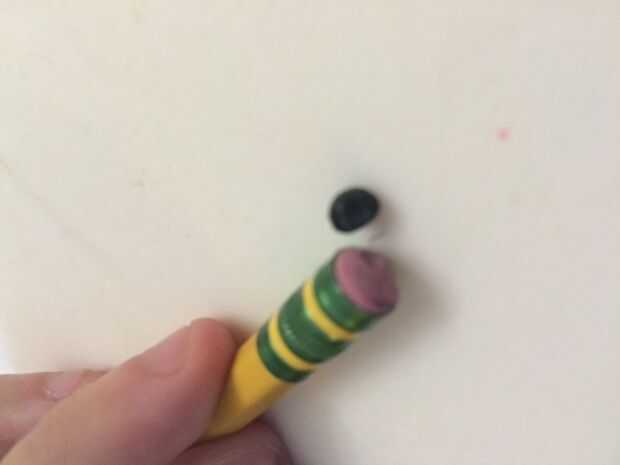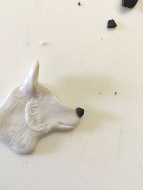 Ahora para la nariz. Tome un pedazo de barro negro del tamaño de 1/4 un borrador y rodar en una bola. forma en un triángulo la mitad círculo algo. No lo hacen demasiado puntiagudo o demasiado redondas, aunque. Cuando tengas la forma de la nariz, presionar sobre el hocico. (No presione demasiado - apenas le dan suficiente presión para quedarse).