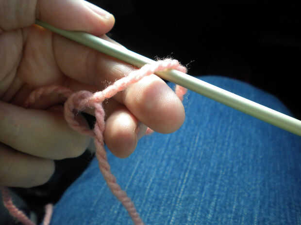 Empezar echando en 23 puntos y deja a una cola de diez a doce pulgadas para coser el talón cuando haya terminado. (Si uso hilo regular, sugiero que utilizar hebras dobles). Yo echo hacer un lazo y luego añadiendo el siguiente bucle a la aguja.