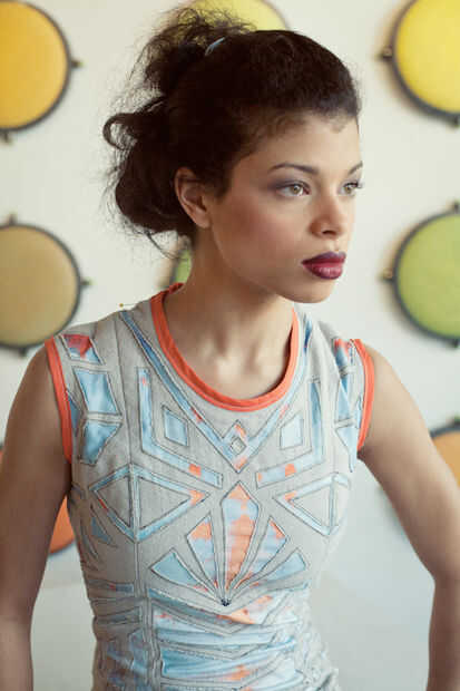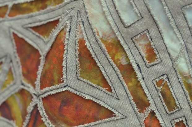 Si opta por no terminar los bordes antes, ahora es el tiempo para terminar los bordes con cinta de algún tipo de enlace. Elegí la naranja porque es un color en la pintura que quería destacar, pero blanco o marrón habría funcionado igual de bien! Si pones las mangas en su ropa, recomiendo no adjuntarlos hasta después de que has hecho el cutwork. Calado se logra más fácilmente cuando las piezas son tan planas como sea posible.