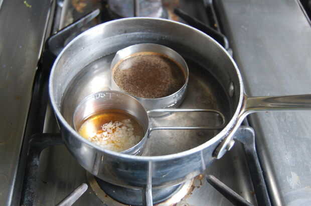 Vierta lentamente la mezcla de aceite en el hamamelis, mezclado con un espumador de leche o tenedor hasta que todo el aceite es mezclado y emulsionado.