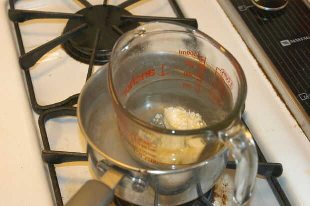 - Taza de medir y medir cucharas, un vaso de medir recipiente y olla pequeña para una caldera de doble