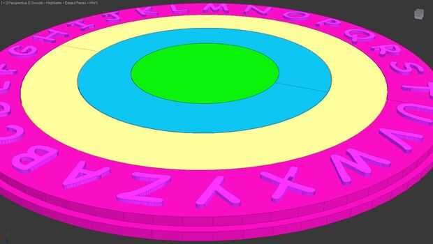 Como tipos puede utilizar letras o números, o también de cualquier símbolo. En el disco externo me decidí a poner todo el alfabeto, y elegí algunas letras para los discos internos, para componer muchas palabras. Ver la película final para descubrir la palabra secreta para este ible.