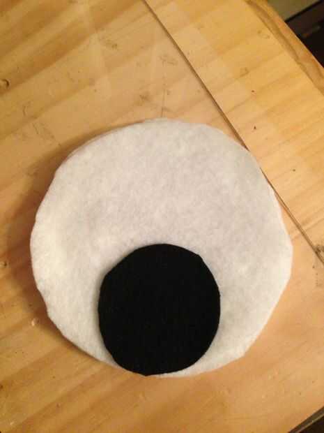 Todo lo que queda por hacer es darle ojos, cortadas el fieltro a la medida. Para mi disfraz de las dimensiones del ojo son: