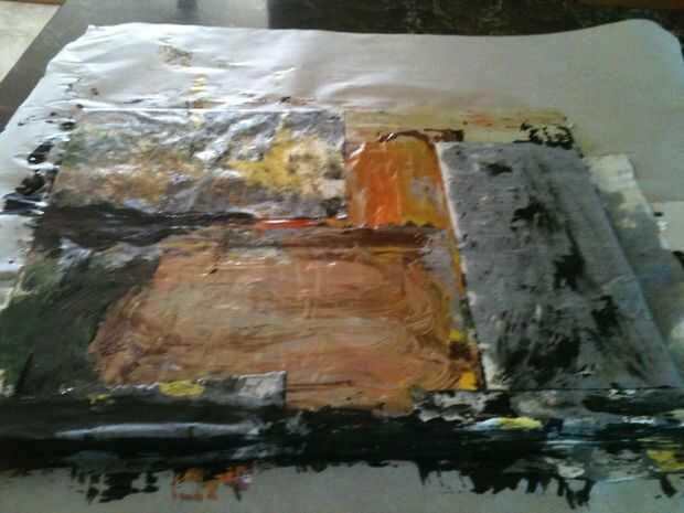 una vez que todo el tablero está cubierto su tiempo para revelar tu obra maestra! Para ello, sacar todo el papel que pones en el board.make que lo dejó seco que podría tomar un par de horas o incluso unos pocos días dependiendo de cuánta pintura usaste. Finalmente colgar para que todo el mundo pueda ver!!!