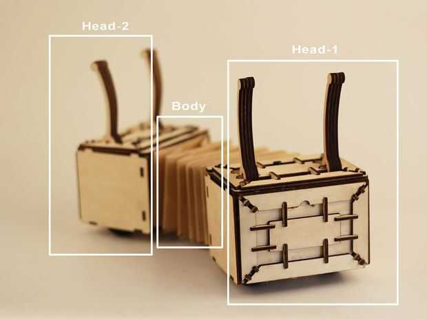 Hay tres partes de la oruga: cabeza-1、Body、Head-2、