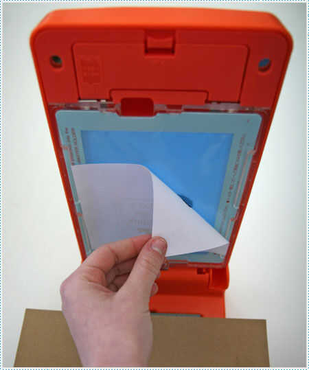 Al abrir la tapa, su original debe ser pegado a la pantalla principal. Pelar cuidadosamente el original de la pantalla. Sacar la pantalla y el filtro azul de la tapa. Termine con el filtro azul en este momento, usted puede poner distancia.