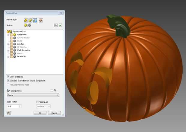 8) Abra una nueva pieza de standard.ipt, haga clic en el botón de derive, seleccione el nombre de la cara y usando la opción escala de cambiar su tamaño a un valor entre (.7 y 1.5)