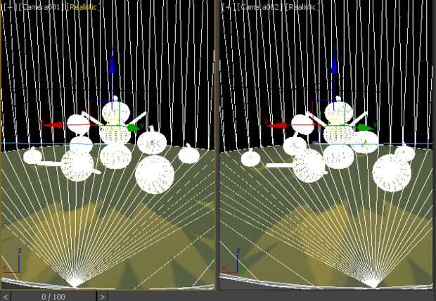 3) Coloque dos cámaras como se muestra (Asegúrese de que no son demasiado lejos aparte y que se puede ver la mayoría de sus calabazas y están a la misma altura y la distancia neta de la escena)