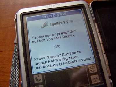 Cuando abres Digifix siga las instrucciones. Se ve y actúa mucho como el software de calibración estándar de Palm OS. Digifix no va a trabajar en Sony Clie' ordenadores de mano, pero se solucionó mis problemas. Puedo ahora navego en mi mano muy fácilmente, si utilizo el lápiz de fábrica o la esquina de mi uña. Es casi como tener una nueva computadora de mano.