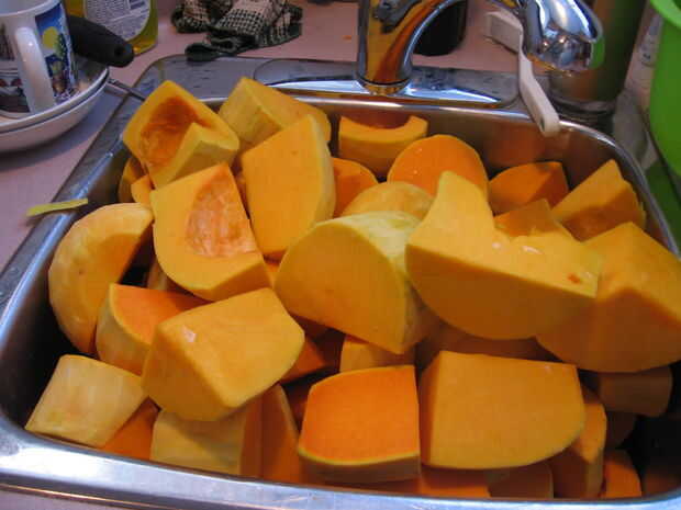 Todas la calabaza ha sido pelada y semillas.