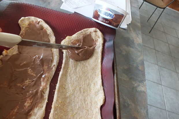 Propagación con Nutella y espolvorear con azúcar glas o cualquier relleno que amas