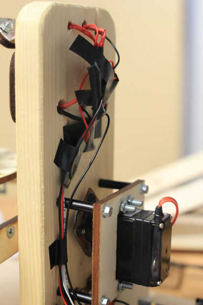 Para terminar este paso, sólo perfore otro agujero de 9-10mm en la parte inferior del post principal para más adelante poner los cables de los otros servos a través. 2cm desde la parte inferior hould a estar bien.