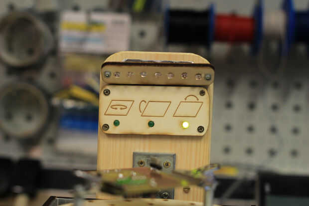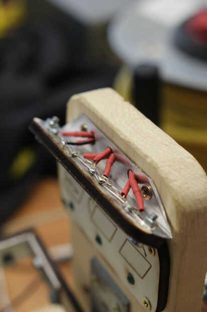 Para la barra de modo sólo taladro 3 agujeros para los LEDs (verde) y utilice 4 tornillos para madera para fijar en el poste, justo debajo de la barra de LED. hace que perforar los agujeros del LED hasta el poste principal, añadir resistencias de 200 Ohm (depende en qué LED usas!) a cada uno de ellos y si quieres, grabar algunas señales para identificar a cada modo. Fotos ver más!