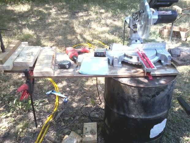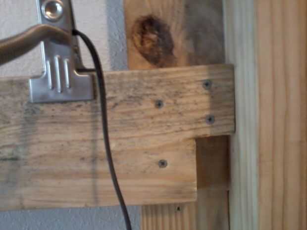 después del corte, voltee las placas dos 41 pulgadas para que las secciones que falta de negro están en el suelo y forman el armazón de la cama. las muescas se alinearán y puede atornillar en la madera para sostener juntos. los tornillos van en el lado de un tablero (la sección blanca sin cortar) y en el pedazo de extremo donde estaba la sección negra. (Recuerde que las medidas serán diferentes Si utilizas madera de diferentes tamaño - utilicé 2 x 6).