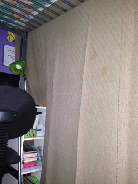 Este es el fuerte de parte de la fortaleza de añadir una manta, una hoja o lo que es suficiente para bajar la longitud de la cama. Pieza de empuje debajo de la cama para mantenerla ahí uso un tallarín de piscina en rodajas por la mitad del lado en use para sujetar la manta a la cama. Los tallarines también ayuda a proteger su cabeza de golpear la cama
