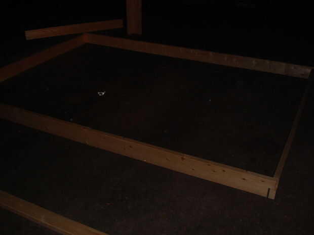 Una vez que han recortados los extremos, seco monte el bastidor. Probablemente que las juntas será ligeramente deformado en algún lugar a lo largo del manera que mantenga un ojo hacia fuera para eso. Atornille el marco en las esquinas, asegurándose de mantener el nivel de los bordes superiores. También, seguir adelante y atornille las tablas que Irán en la parte superior de la estructura en cada extremo. Esto agregará rigidez cuando se hae más adelante a moverse la estructura inacabada.