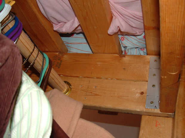 Aquí está una escalera bastante sencilla para una cama del desván.Utilizar conductos eléctricos metálicos para hacer el pivote. Es alrededor de 20$ en materiales.Es básicamente un rectángulo construido a partir de conducto que gira para permitir la e