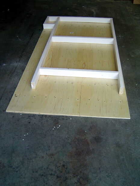 Montar el cuadro de 2 x 4 como se muestra, otra vez con tres tornillos por junta. Las posiciones de los contratiempos no son críticas.