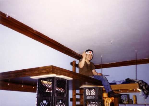 En el verano antes de regresar a la escuela, Batman tenía otra forma de retención y decidió que el loft tiene feo tuvo que ir. En realidad, él había planeado a partir de su viaje a Japón, la caída antes. En el exterior, se asemejó al desván de la mesa de billar. El diseño, sin embargo, era una estructura de caja de huevo, es decir, una cuadrícula de casillas, que en este caso fue hecha de dos capas de 2 x 3. El revestimiento exterior es madera contrachapada de 1/2". ¿No era esto algo pesado, usted podría pedir? De hecho, tardó alrededor de 8 personas para llevarla alrededor de la manzana y subir las escaleras en 22. Y aspiró realmente, incluso con muchas personas.