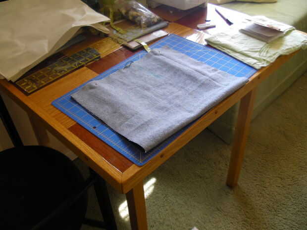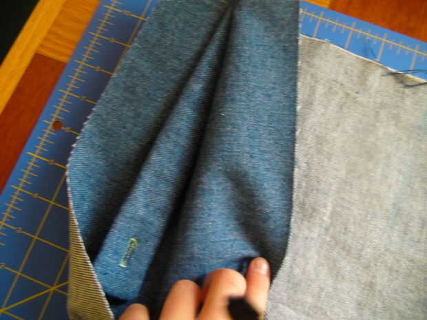 Luego doblar sobre la pieza de forro y pin en las correas para que no mueva o caiga.