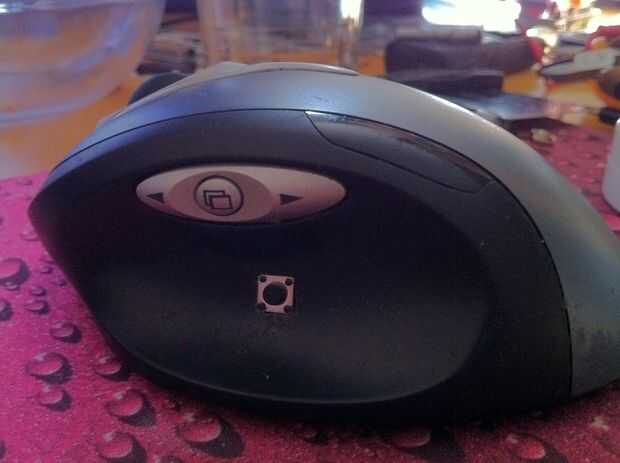 Ahora llegó el momento de hacer espacio para el botón. Taladré un agujero de 4mm en el lugar que se llevaba más el apoyo, como pensé que ahí estaba mi pulgar más. Bingo, una colocación perfecta. Luego archivé lo a una plaza, por lo que el habitual botón pcb encajaría perfectamente. Probé varios botones diferentes para encontrar la longitud correcta y acabó con un 7, altura de 2mm. Yo no pegue en el lugar; como tengo pensado reemplazarlo con un botón-top mejor más adelante, sólo apreté en por ahora. Soldamos los dos cables para el botón de forward y montado el ratón. Prueba funcionó, pero la rueda de desplazamiento no funciona para los izquierda/derecha-clicks. Desmontar el ratón podía ver los cables fueron de la manera, así que cortarlas para perfeccionar la longitud, y ahora funcionó.