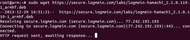 $ sudo wget https://secure.logmein.com/labs/logmein-hamachi_2.1.0.119-1_armhf.deb