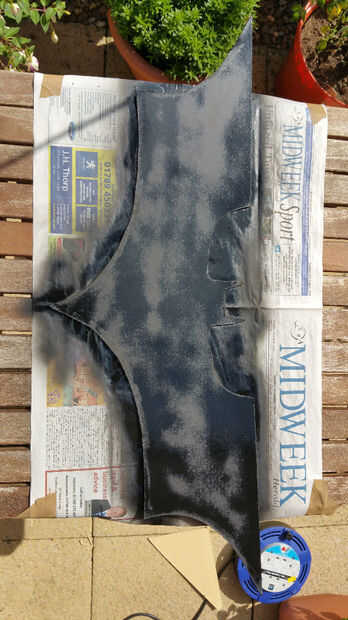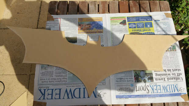 Siguiente paso fue asegurar que tenía una buena cubierta de negro de BatMan, así que cubrí una mesa (exterior) con periódico para evitar exceso de rociado (no suficiente y rociado sobre la mesa)