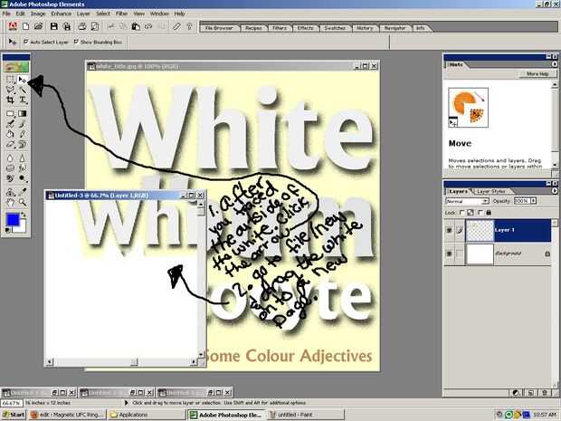 Paso4: Después se remonta el blanco de word, haga clic en la flecha en la esquina superior derecha de la caja de herramientas en el elemento de adobe foto shop (ver imagen). Abra un nuevo archivo y arrastre la palabra blanca sobre el lienzo en blanco. guárdelo como un archivo individual.