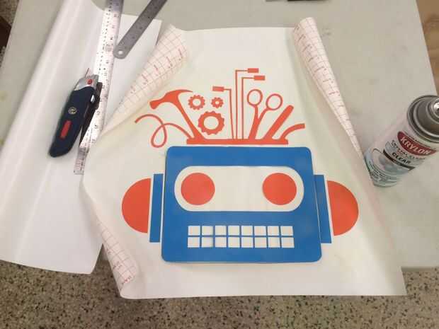 Una vez que se han impreso todos los de su logotipo, colóquela y ver cómo se verá la pieza final. También tomamos el tiempo para utilizar papel de contacto para protegerlo ya que puede estar expuesto a los elementos. Una vez que tuvimos todo protegido, utilizamos adhesivo en aerosol para fijar el logo en nuestro juego atento.