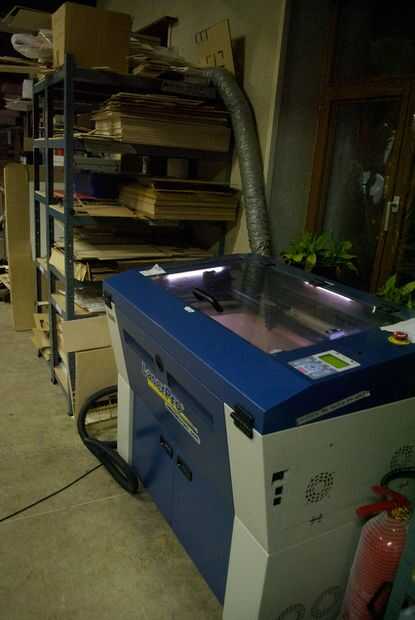 Otra vez, hicimos varias unidades de prueba sobre cartón primero (ver fotos adjuntadas) y finalmente elegir una placa MDF con un espesor de 3,5 mm para el diseño final. Durante la primera carrera, nos olvidamos de tomar el espesor correcto de nuestro material en cuenta, que los laterales de nuestra caja a derrumbarse! Finalmente, después de tres iteraciones, logró hacer las cosas bien y estaban orgullosos de tener todos los componentes para nuestro recinto proyecto hecho personalizado.