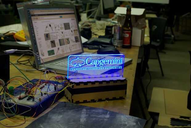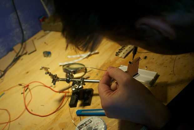 La idea funcionó bien, y pensamos que era una buena idea añadir algunos pegamento caliente al paquete soldado para darle un poco de alivio de tensión. De repente, vimos un curioso efecto secundario: el pegamento caliente parece actuar como un aislante entre las diferentes salidas PWM conectadas, que dio lugar a una gran capacitancia parásita entre las señales de los transistores driver. Esto provocó nuestra tira LED para cada color rojo, verde y azul secuencialmente en lugar de amortiguar todos al mismo tiempo. Un error bastante chulo (característica?)!