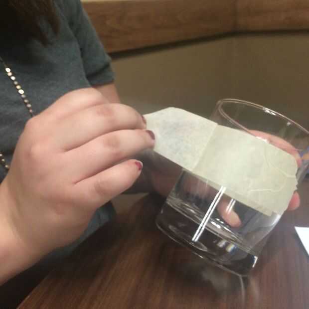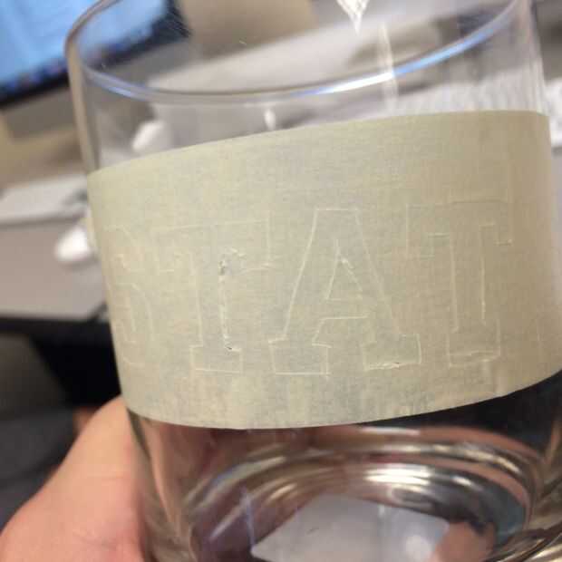 10. muy lentamente, retire la capa superior de cinta de enmascarar, dejando que se corta sobre el vidrio con no hay piezas que faltan. Ver séptima imagen.