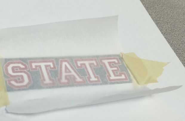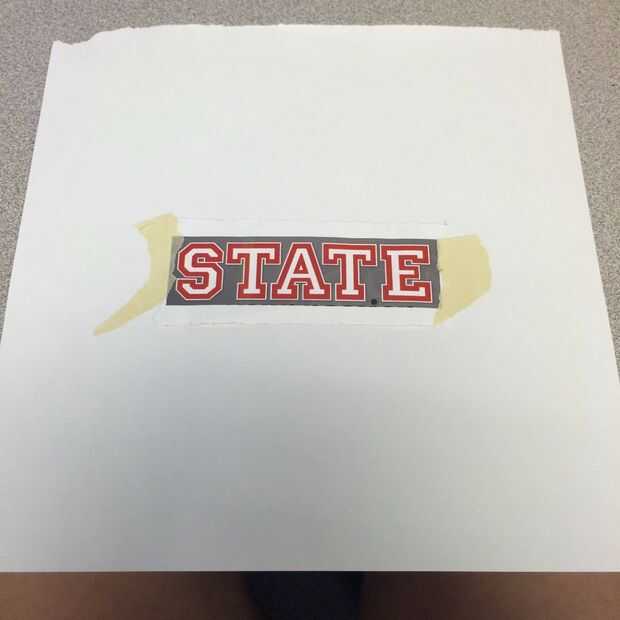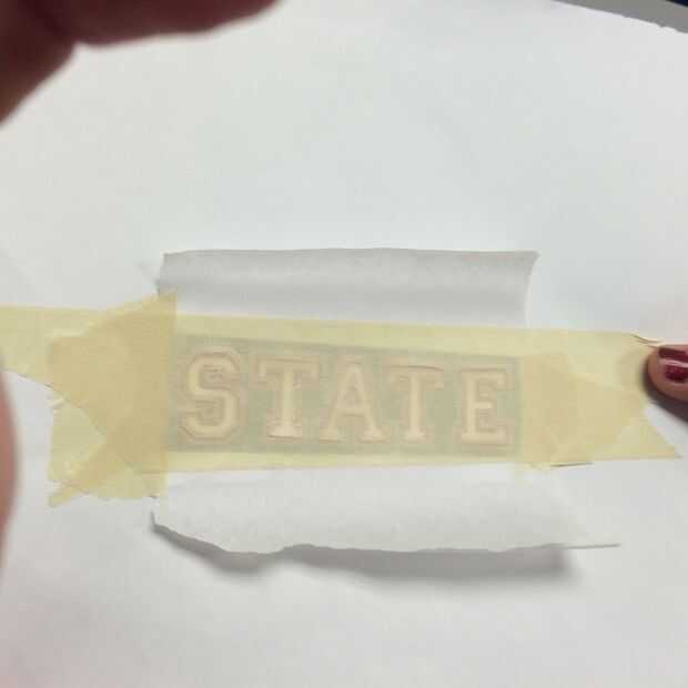 5. cortar un trozo de cinta adhesiva sobre una 1/2 pulgada más largo que su diseño y luego centrarla para que los extremos de la cinta serán garantizar el papel pergamino sobre el diseño. Ver tercera foto.