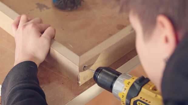En primer lugar, tenemos que cortar el MDF en tiras para hacer el marco. El tamaño final de mi logo es 21 "x 21" x 2"(55 x 55 x 5,3 cm) que significa que corté las tiras de aproximadamente 2" de ancho. Fui con inglete encolados y tornillos de refuerzo pero se puede utilizar cualquier otro tipo de articulación que se sienta cómodo haciendo. O usted puede simplemente tope común las piezas con tornillos avellanado pero no olvides que si trabajas con un logo cuadrado, así que 2 de los lados deben ser más pequeñas: