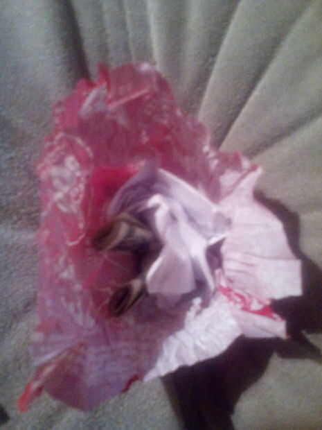 Toman su dinero y cosas en el contenedor. Luego poner papel alrededor de él para que la envoltura mantenga su forma (lo podría hacer con el dinero si tuvieras suficiente)