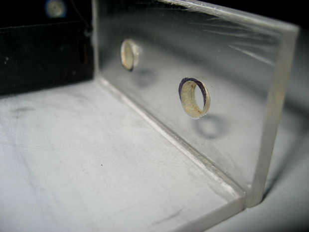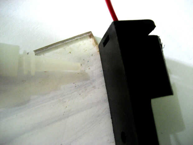 Bien así ¿ves esos dos clavijas en la cámara? esos son lo que dispara el flash por lo que desea conectar un enchufe de la c.c. con el cable a uno de los dientes y hacer lo mismo con el otro, te olvides de añadir la tubería termocontraíble primero! después de usted y su titular AA de la porción delantera de la Asamblea de acrílico del pegamento y pegar el conjunto inferior (donde se encuentran los terminales) a la parte delantera. (ver fotos para más detalles)