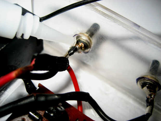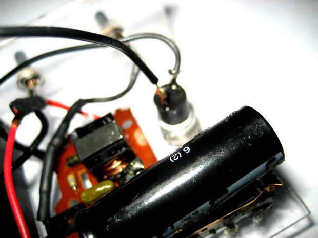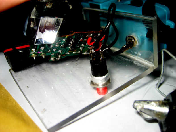 Esto es totalmente opcional, sólo puede conectar la entrada del circuito flash directamente a la batería. de todos modos, así que tienes que marcar el agujero donde va el interruptor y taladrar al tamaño correcto. A continuación, tendrá que añadir algunos caliente pegamento a tu circuito y pegan a la pócima delantera de acrílico. por último, pegamento ambos terminales a la parte inferior.