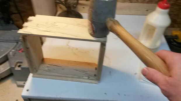 Un mazo de goma ayuda a las articulaciones encajan. Este cuadro encajan muy bien, las pinzas no eran necesarias. Si las articulaciones están un poco flojas, una correa de abrazadera o trinquete de banda trabaja bien hasta que el pegamento se seca.