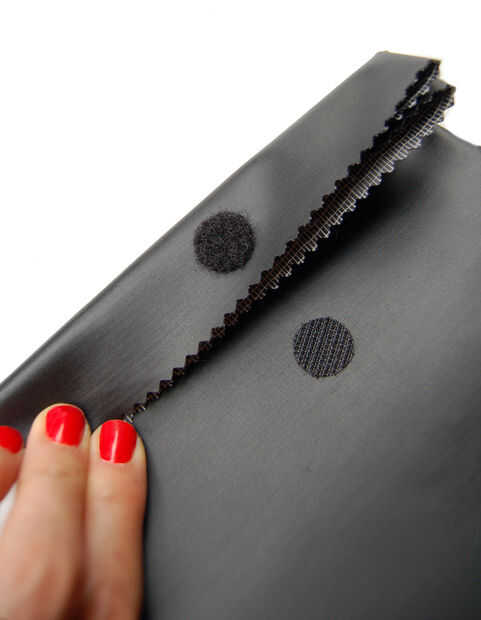 Para el cierre, colocar una mitad de un adhesivo de Velcro a la parte superior de un lado, baje y coloque la otra mitad al otro lado.