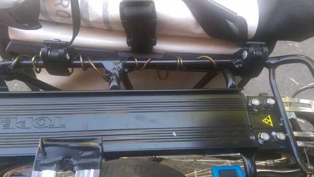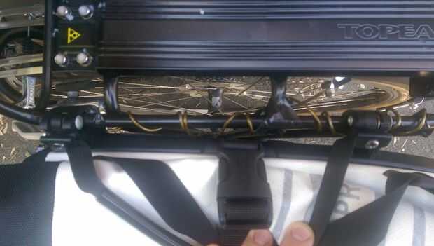 Como he mencionado anteriormente, si usted quiere usar su parrilla para otra bolsa, asegúrese de que usted planificar dónde colocar la percha. Traté de mostrar lo apreté con un Ortlieb gancho hacia delante de la percha y el gancho posterior en la ranura de la "lonchera".